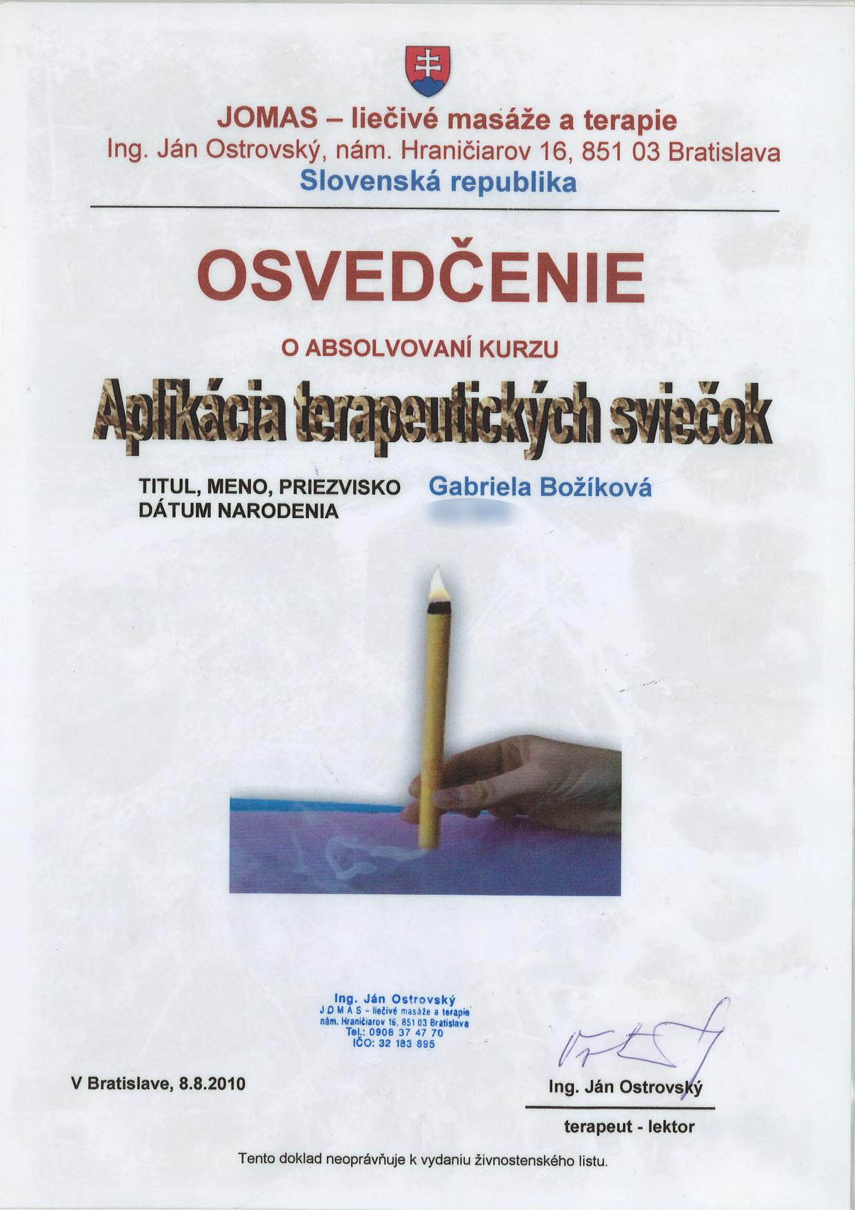 Aplikácia: Sviečku zapálime na hornom, širšom okraji a priložíme na postihnuté miesto. Teplo zmäkčuje nahromadené usadeniny, pozitívne ovplyvňuje prípadné zablokované toky energie, obnoví sa prúdenie tekutín medzi bunkami. Cez rozšírené póry kože sa dostanú do zablokovaných tokov výťažky liečivých rastlín a esenciálne oleje. Podtlak vytiahne rozpustené usadeniny a hnisavý odpad z tela na stenu sviečky.