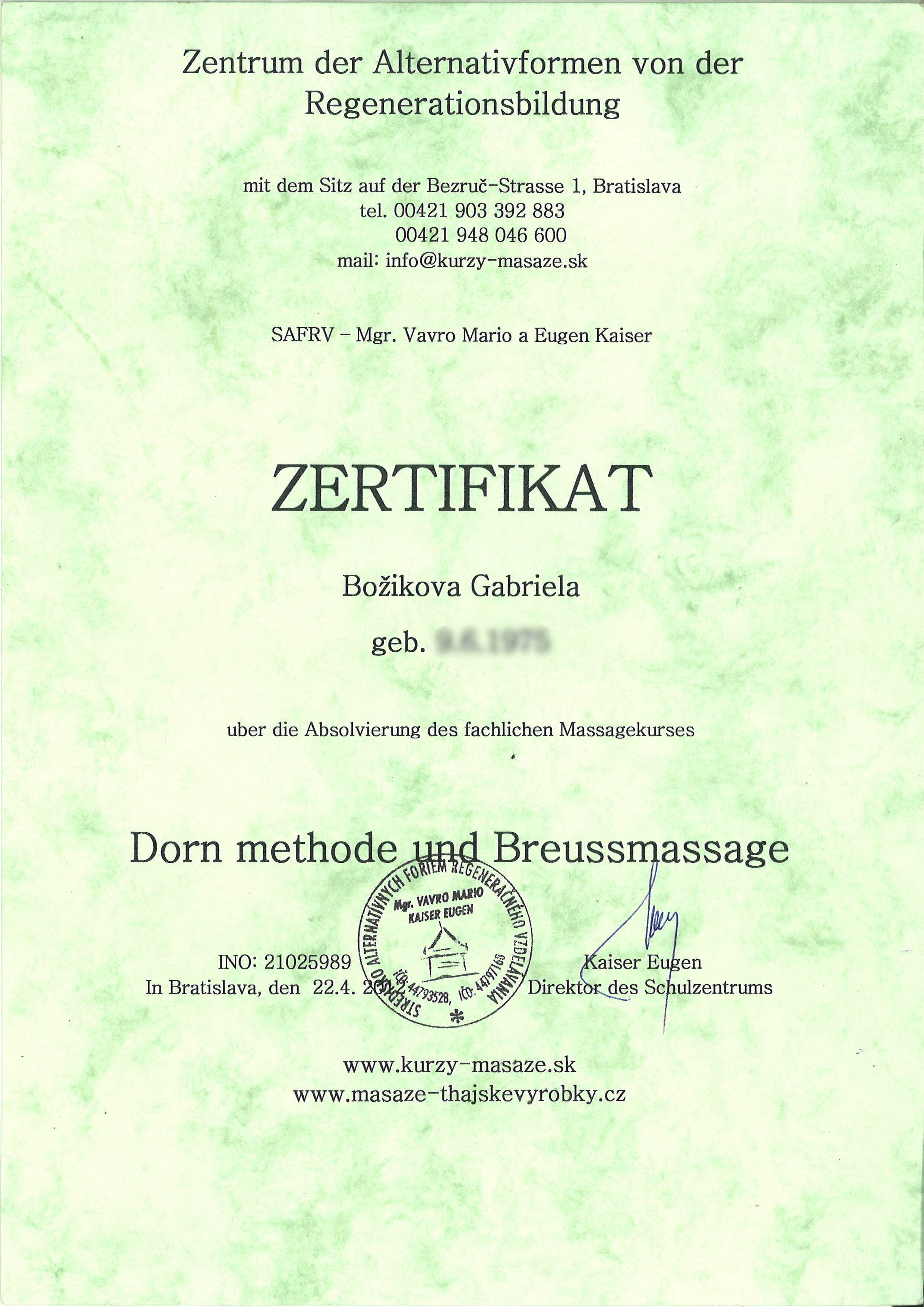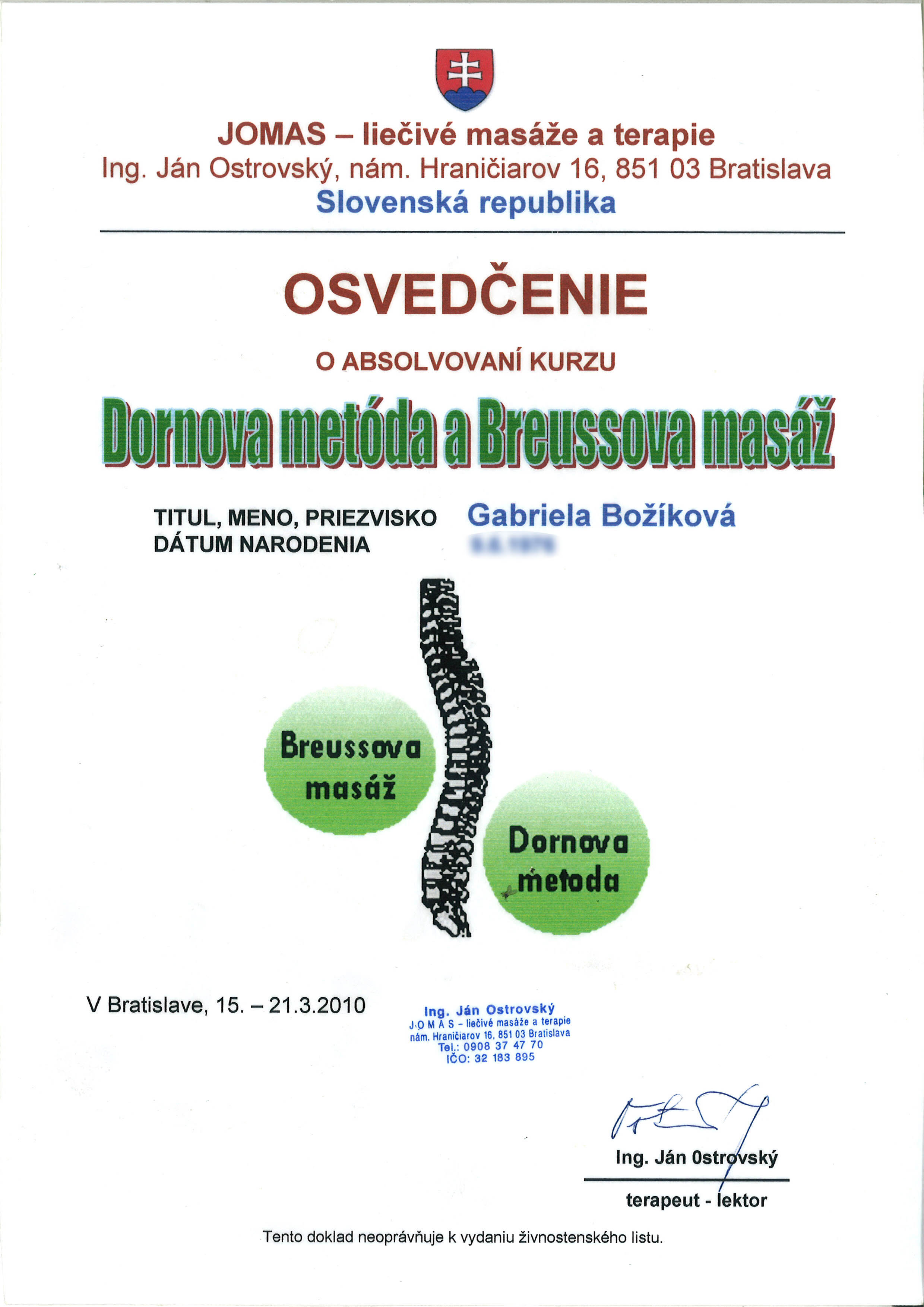 | Dornová metóda a Breussova masáž - 30 min | 25 € |