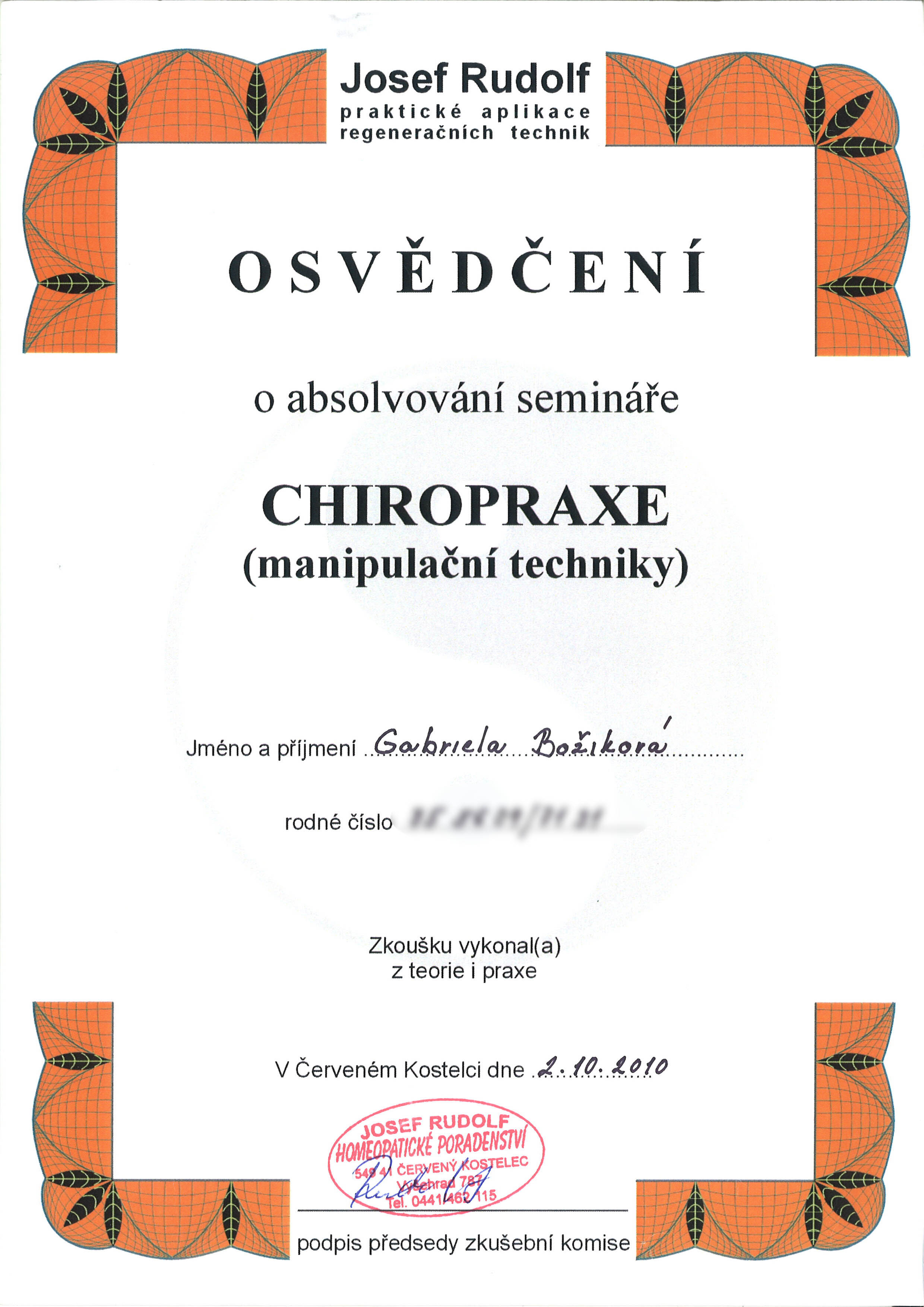 Je to metóda na jemné ošetrenie stavcov a kĺbov v oblasti chrbta, priamo ale aj nepriamo je spojená s chrbticou kde sa pracuje s klientom ležmo. Bezbolestne sa ošetrujú a uvoľňujú zablokované miesta. Táto metóda je vynikajúci prostriedok pri bolestiach chrbta v krížovej aj medzilopatkovej oblasti. Uľavuje takmer okamžite od bolestí, napráva posun v sakrálnej oblasti, skoliózu a mnoho iných problémov sa touto metódou môže vyriešiť. Doplnkom je masáž s ľubovníkovým olejom, zameraná na medzistavcové platničky a uvolnenie svalstva. Je to masáž silne energetická, harmonizujúca, ukľudňujúca, ktorá rieši duševné, energetické a telesné blokády. Je kľúčom k riešeniu problémov pohybového aparátu, hlavne v oblasti krížovej kosti. Pracuje sa s ľubovníkovým olejom za pôsobenia osmotického tlaku.